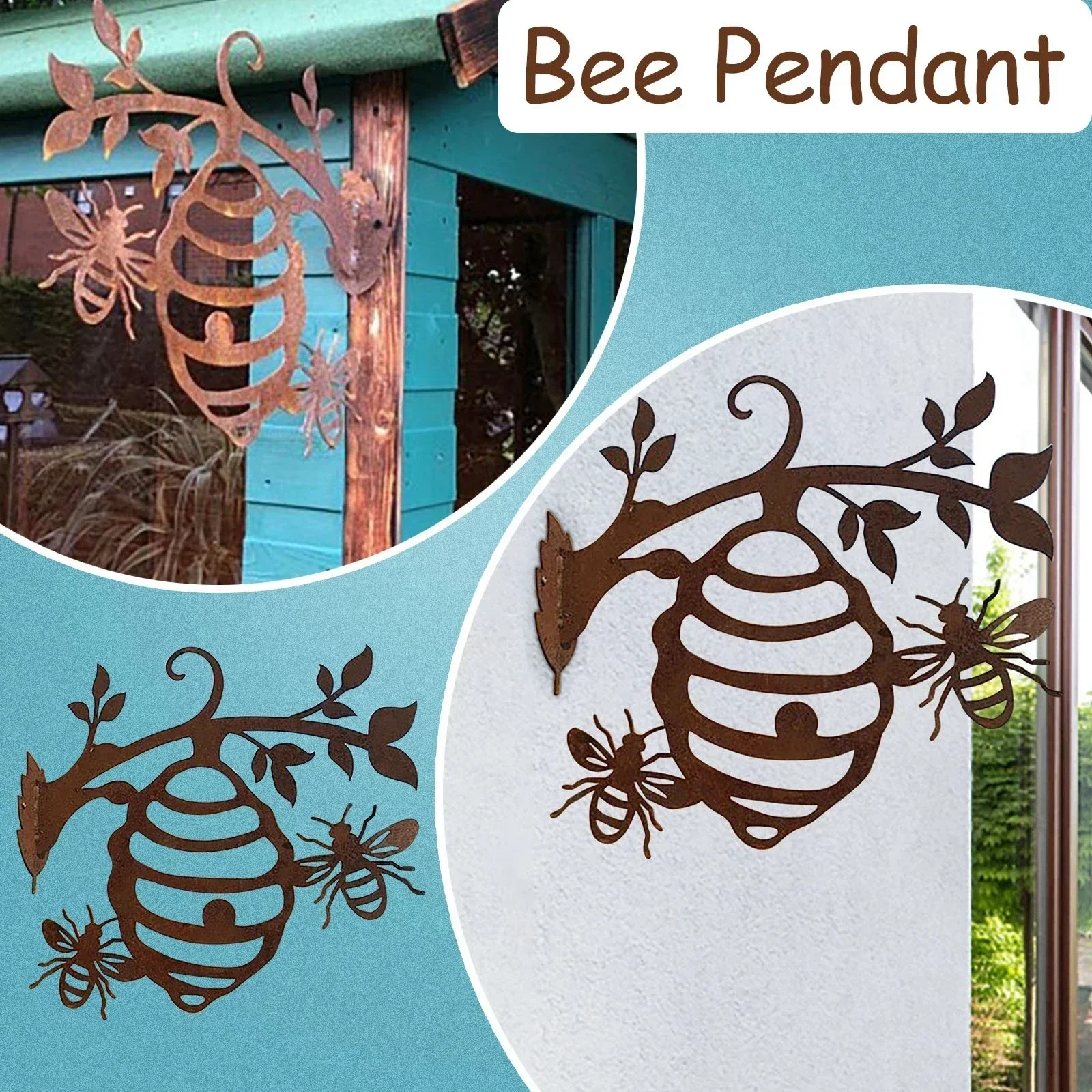 Metal Honeycomb Bee Silhouette Art Pendant Outdoor Garden Fence Decor