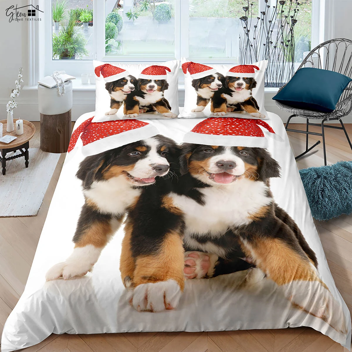 Cute Christmas Bernese Mountain Dog Bedding Set 3PCS Soft Duvet Cover