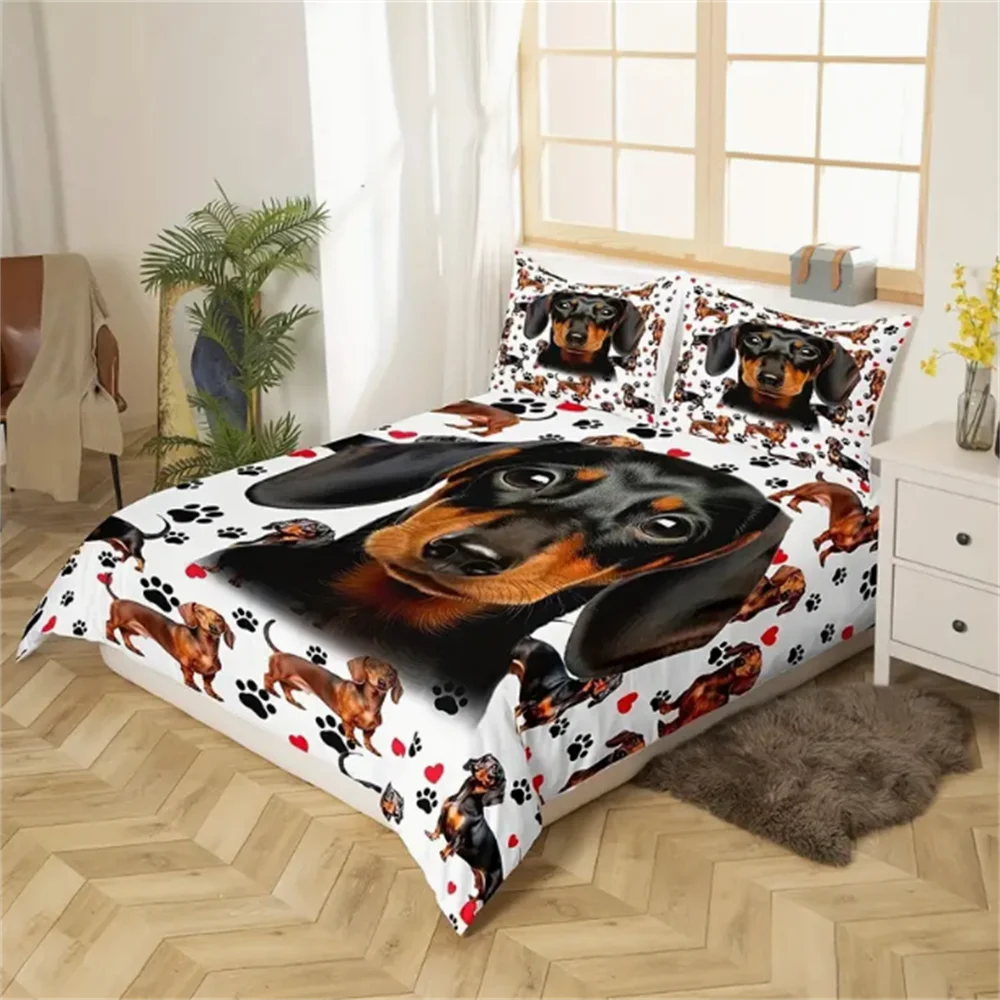 Luxurious Dachshund Print Duvet Cover Set – Ultra-Soft Cozy Dog Lover Bedding