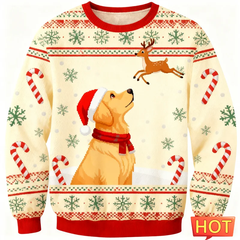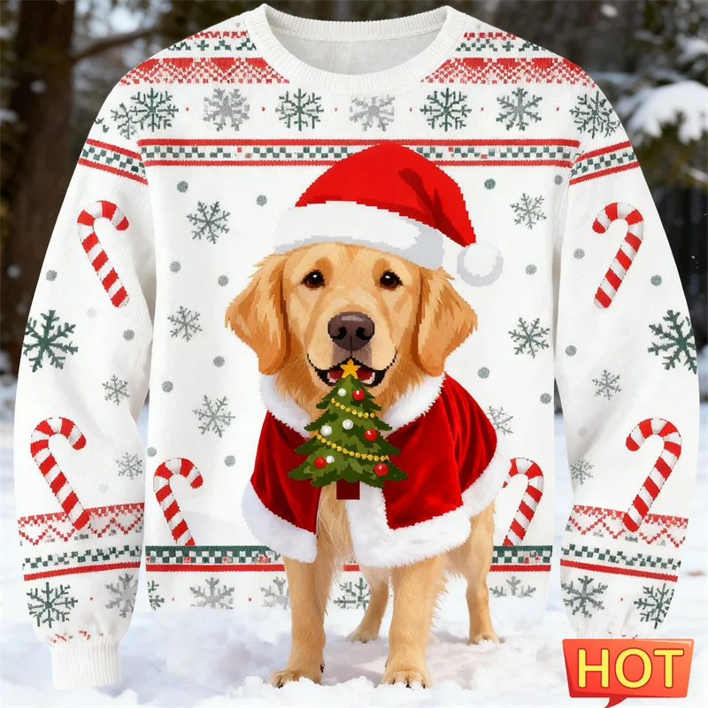 Golden Retriever Ugly Christmas Sweater Cute 3D Printed Dog Streetwear