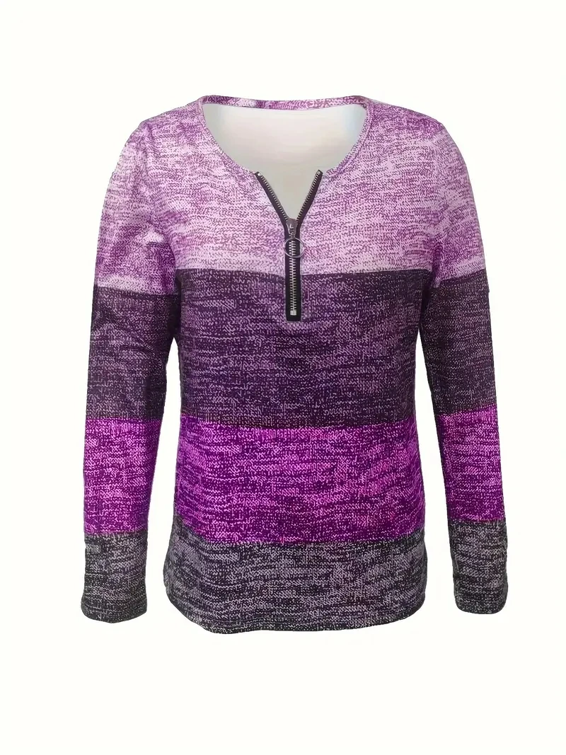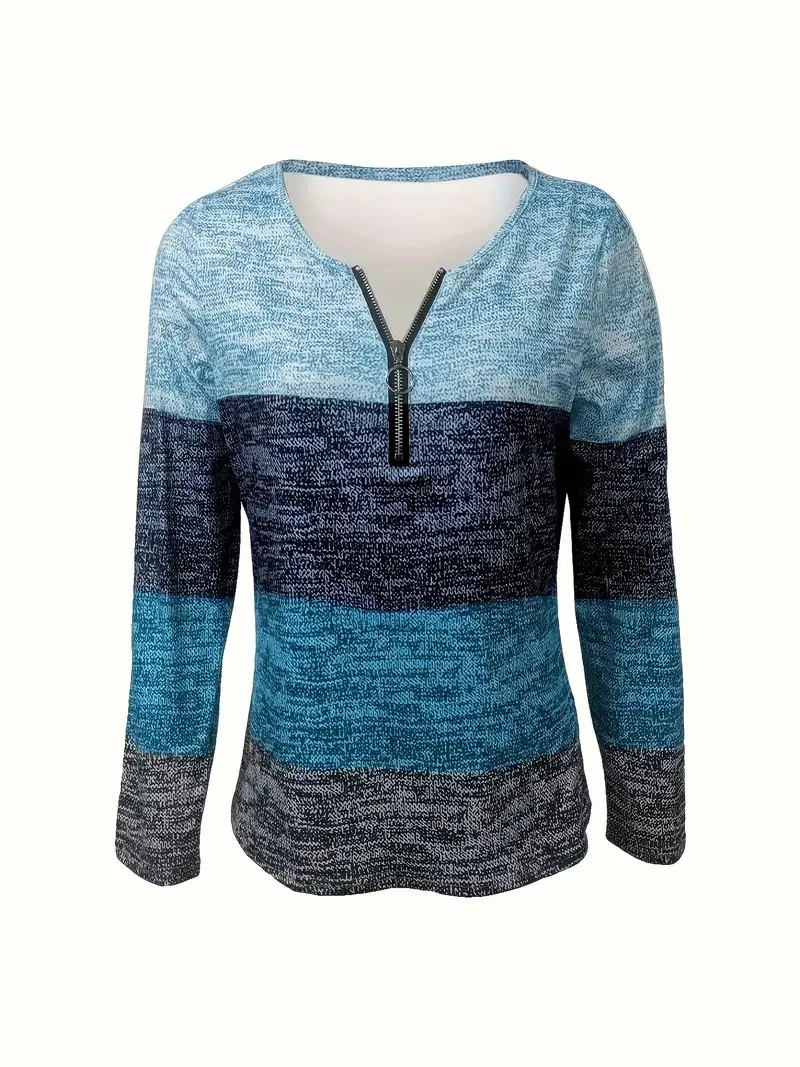 Autumn and Winter V-Neck Zipper Women’s Long Sleeve T-Shirt