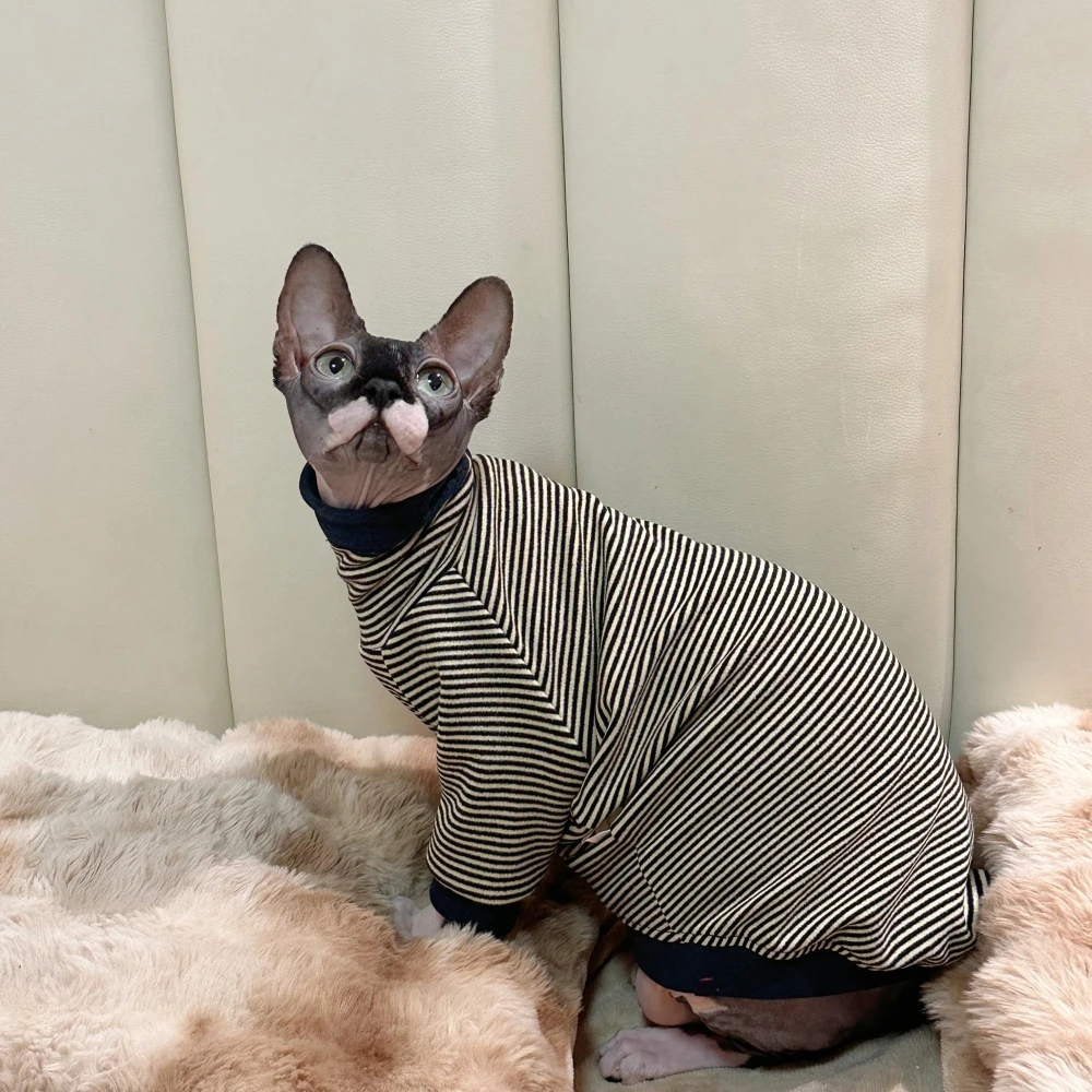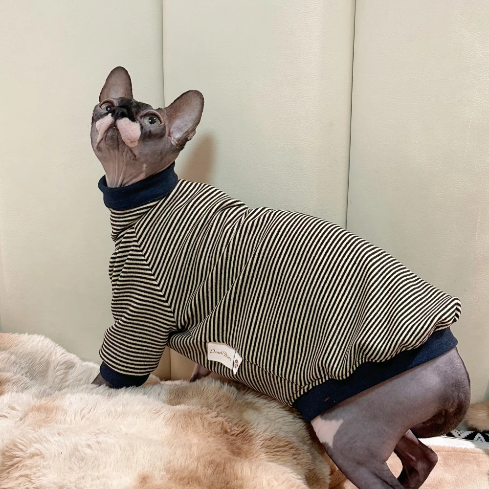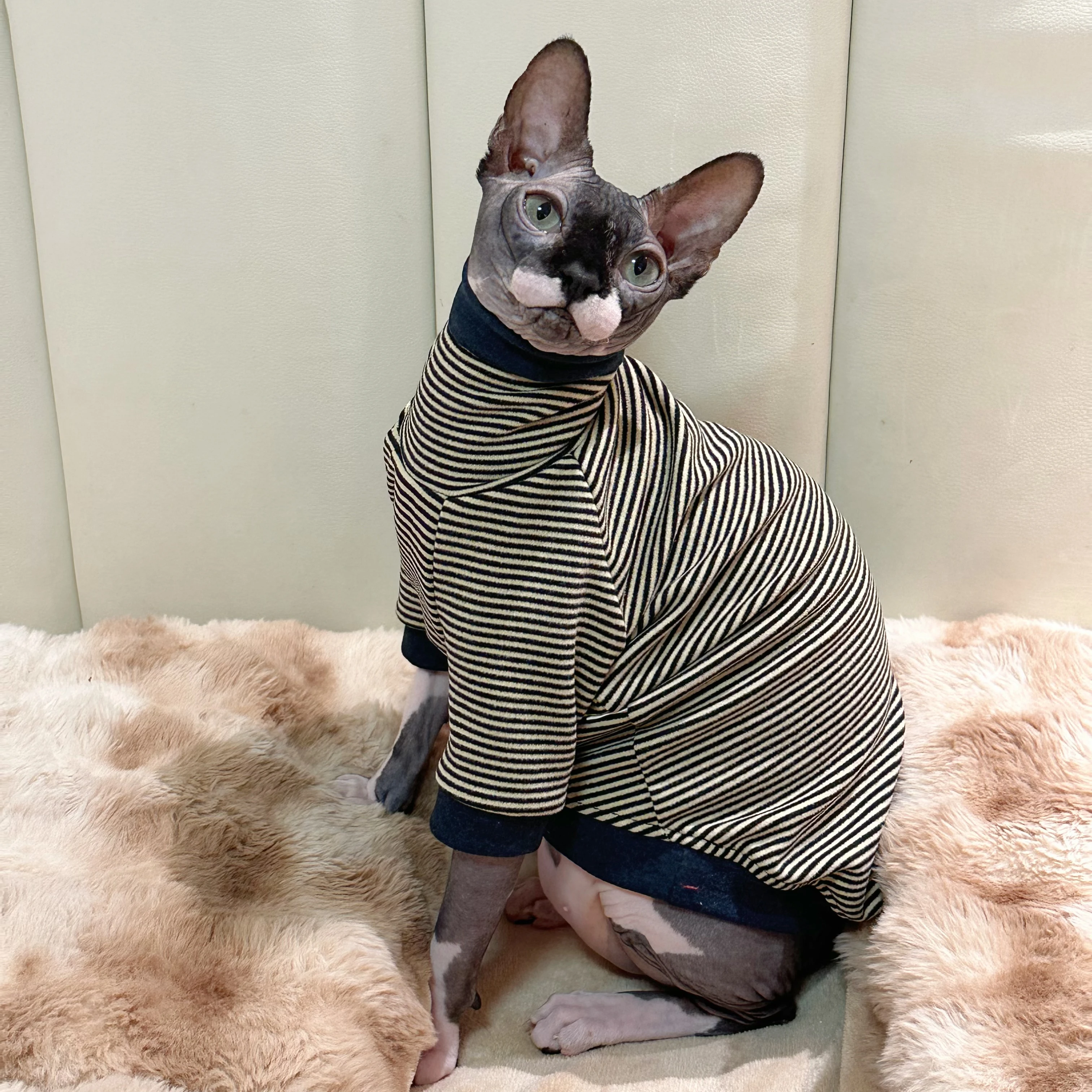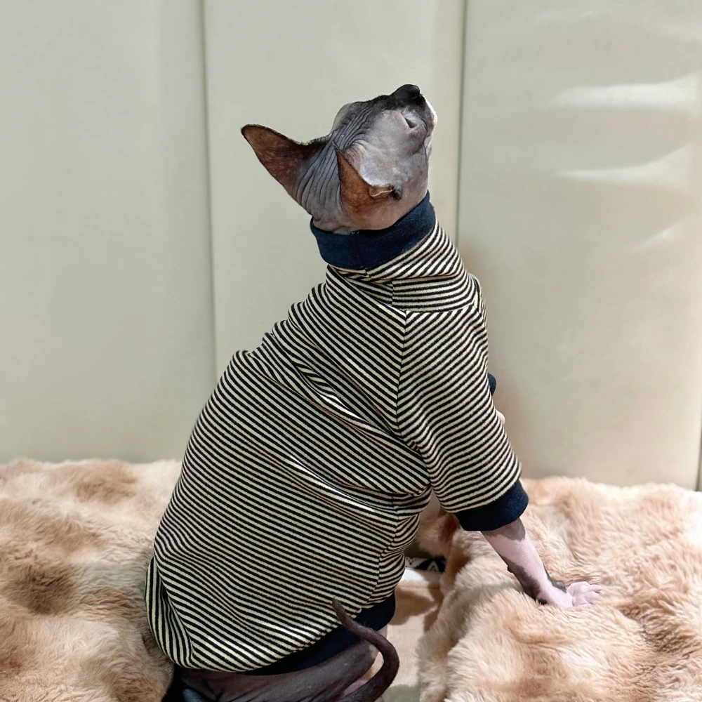 Sphynx Cat Striped Shirt – High Neck Cotton Pajamas for Kittens