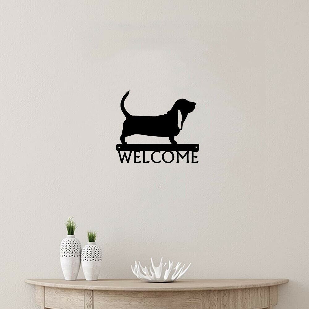 Basset Hound Welcome Sign: Wrought Iron Metal Ornament Decoration