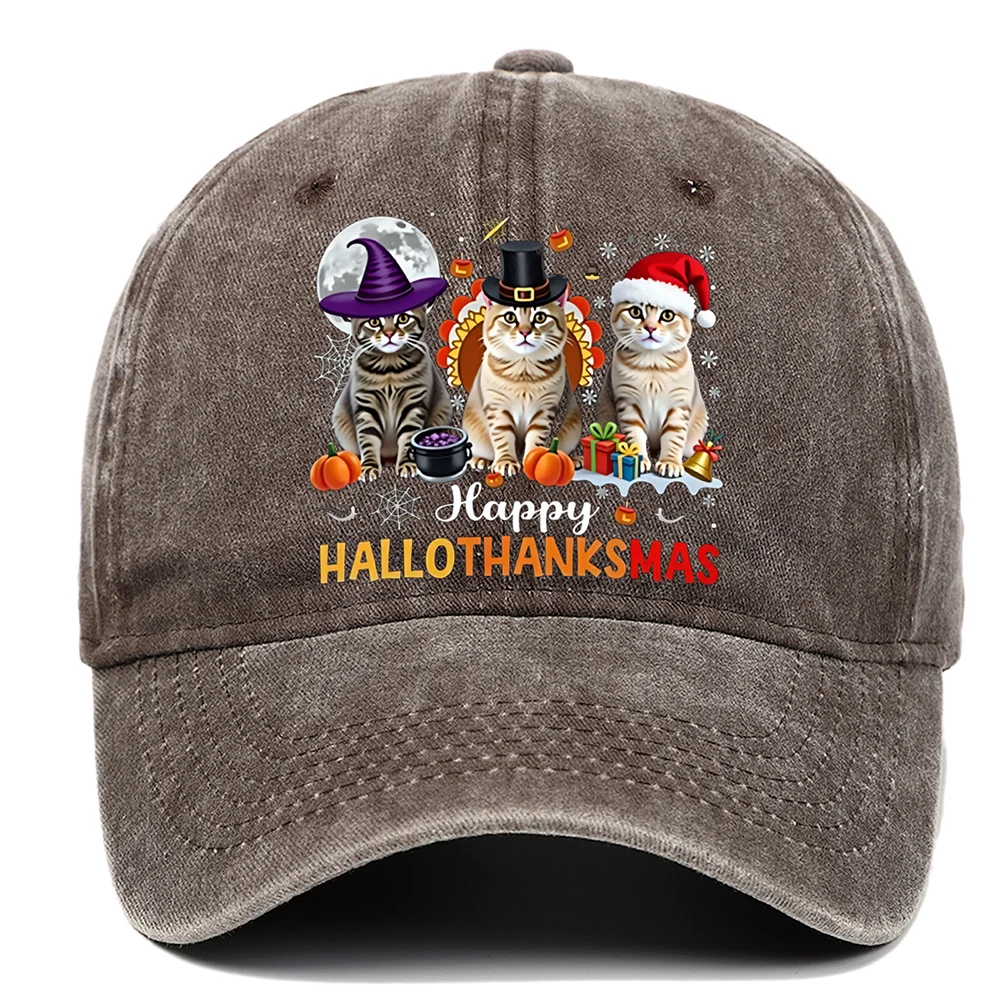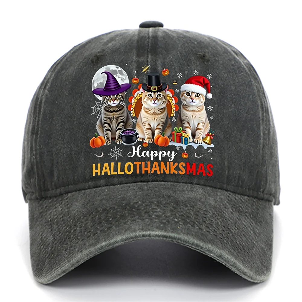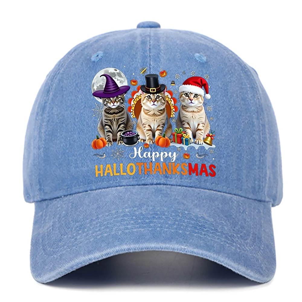 Cute Cat Printed Baseball Hat Adjustable Outdoor Halloween Cap