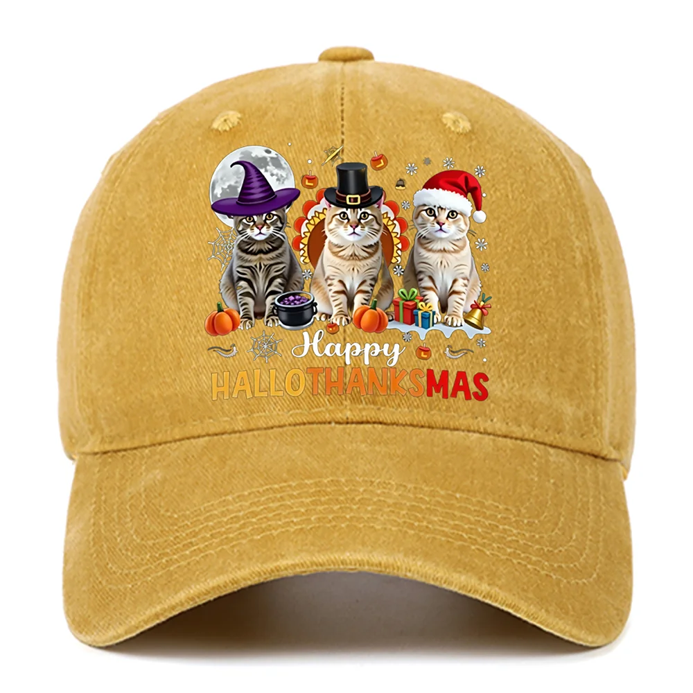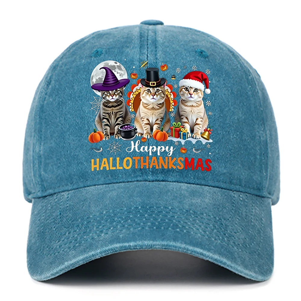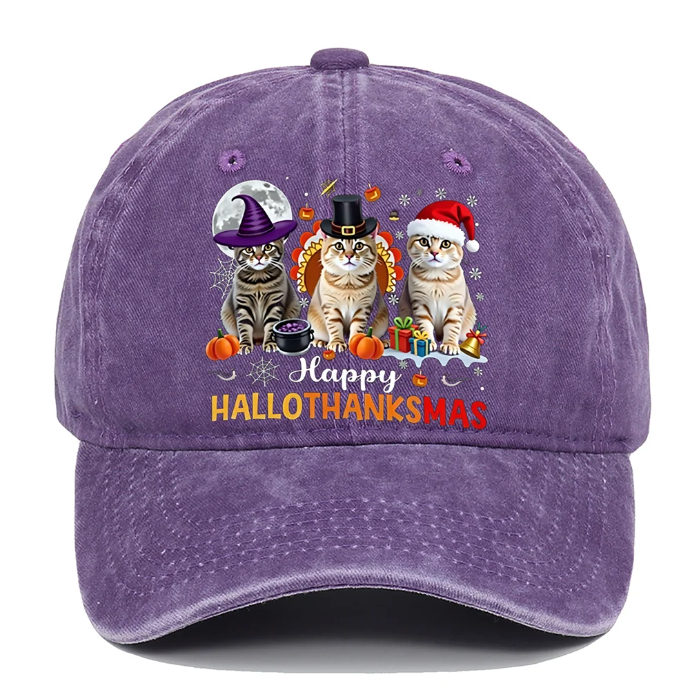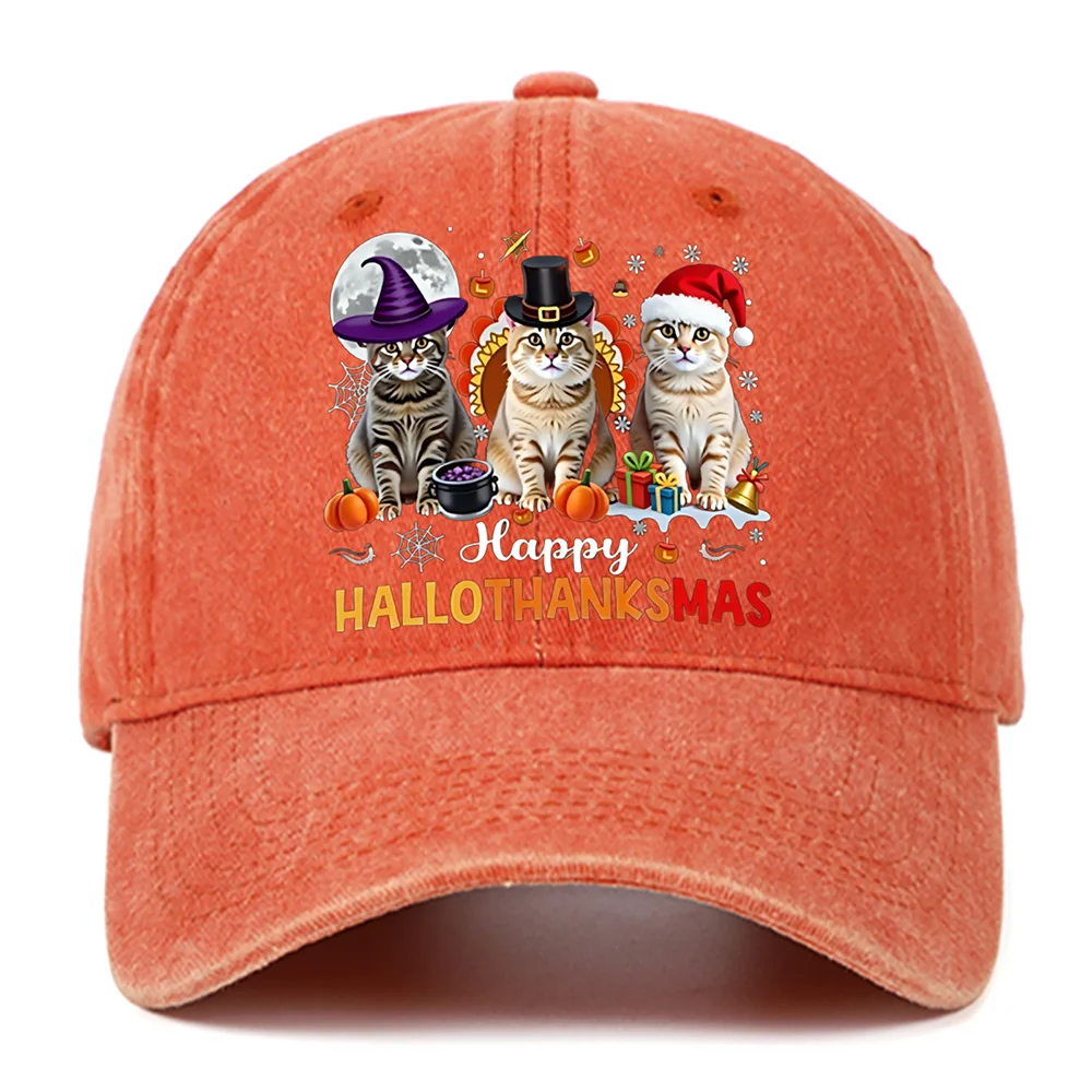 Cute Cat Printed Baseball Hat Adjustable Outdoor Halloween Cap