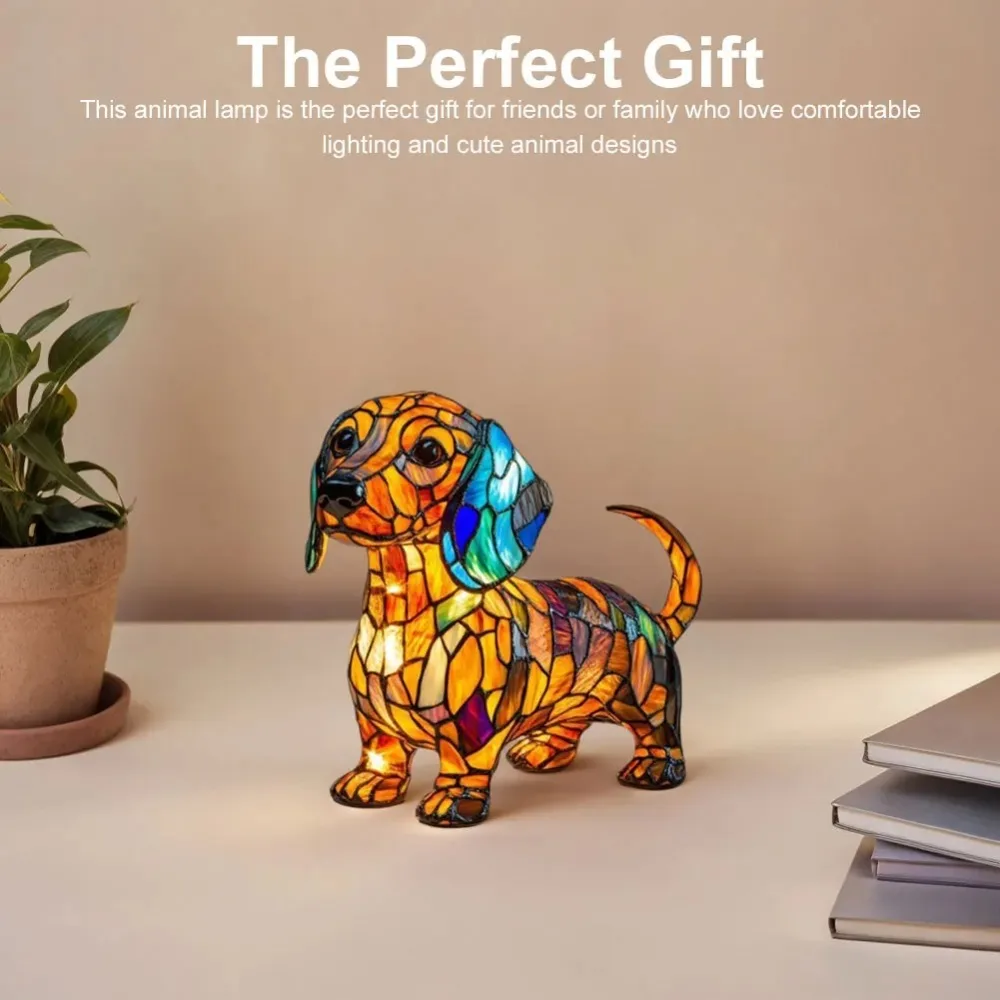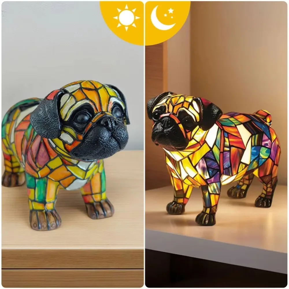 Cute dog series LED night light. Handmade resin desk lamp perfect for bedrooms or living rooms, adds warmth, charm, and soft ambient lighting.