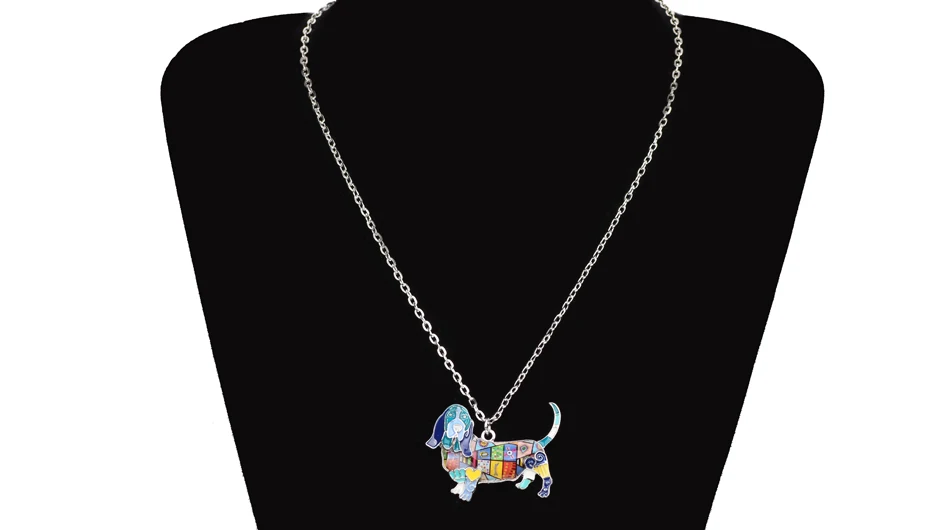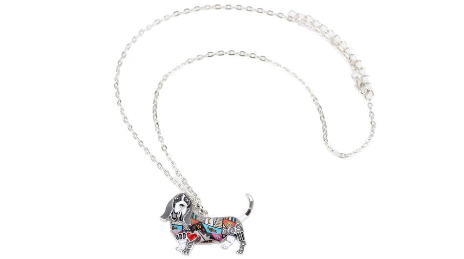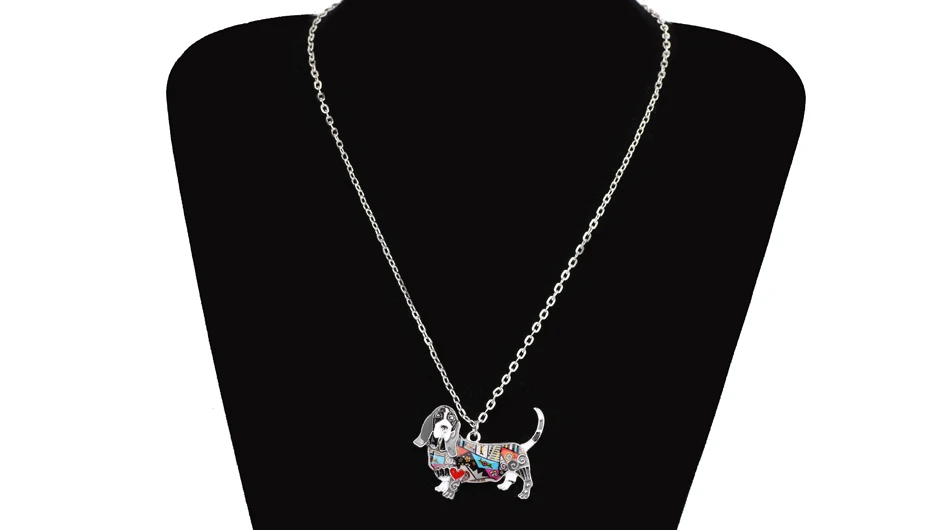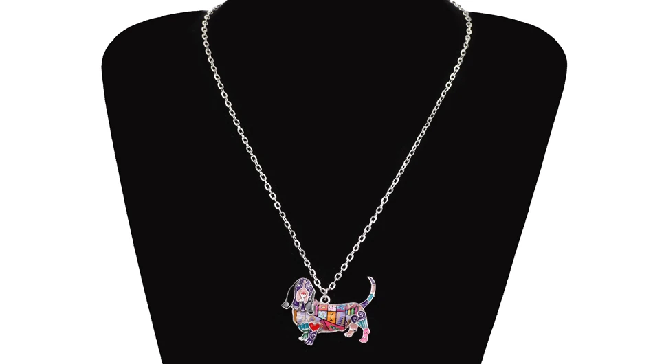Enamel Basset Hound Pendant Necklace Stylish Dog Lover's Gift