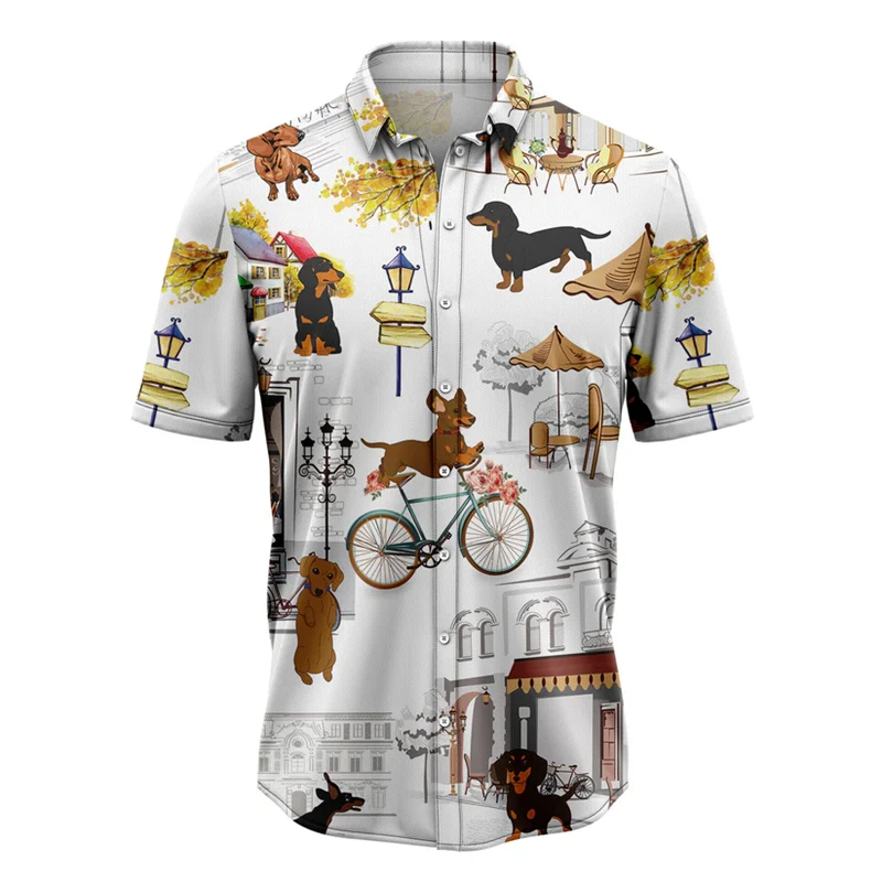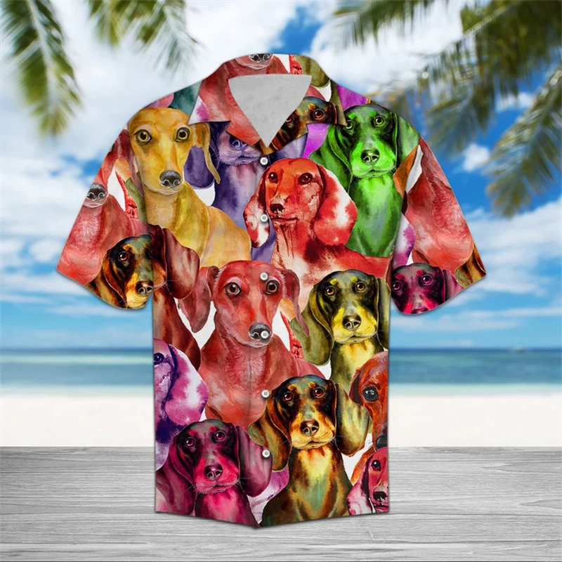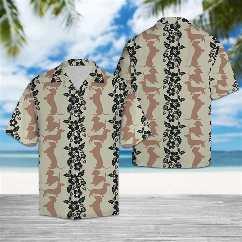 Funny Dachshund Hawaiian Shirt 3D Dog Print Summer Casual Short Sleeve