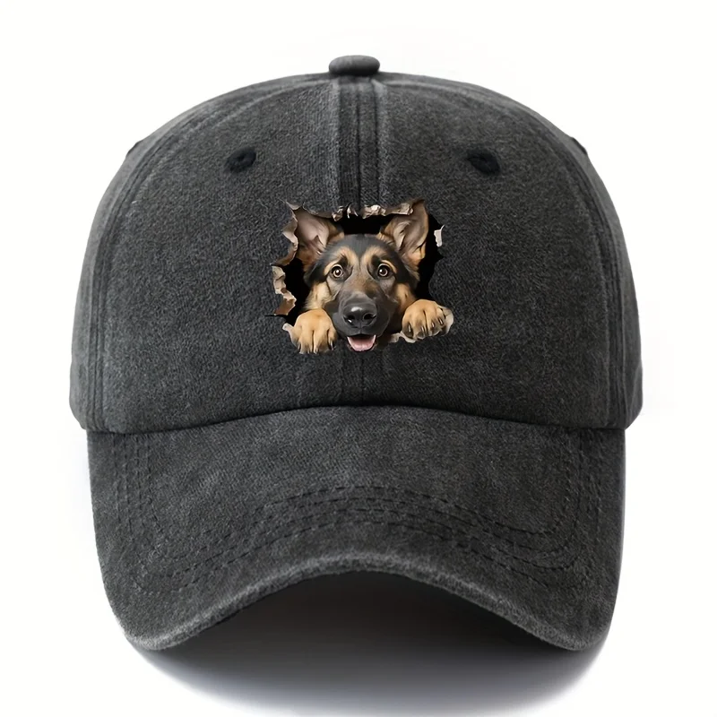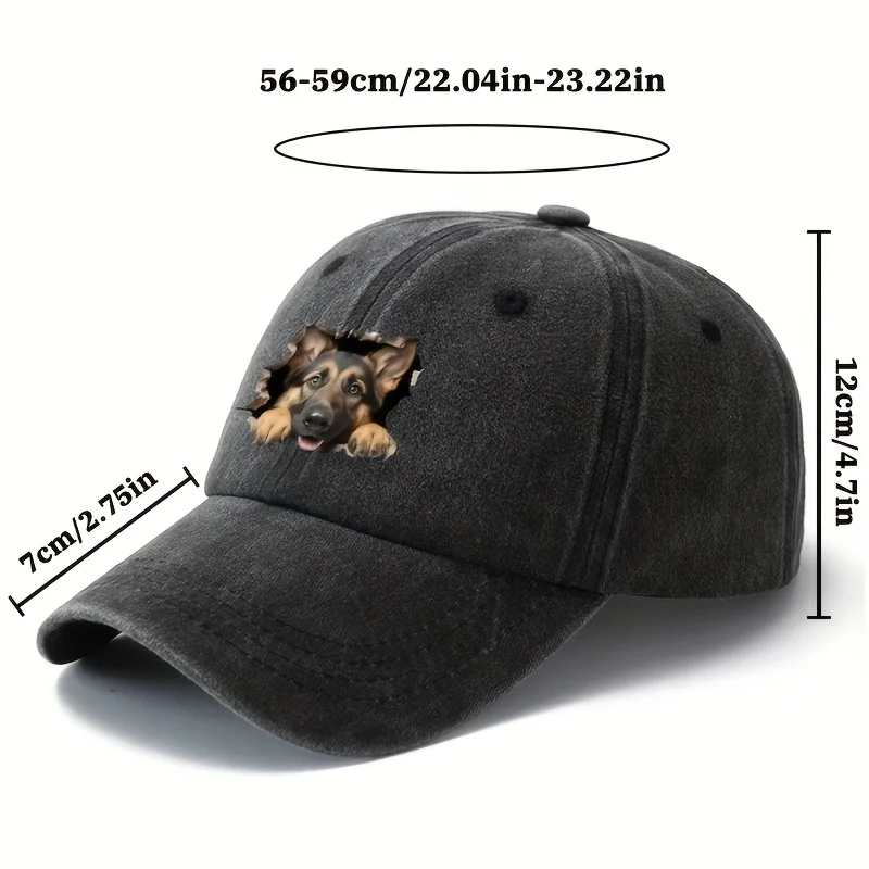 Show off your love for dogs in style with this Adjustable Retro Washed Baseball Cap featuring a detailed German Shepherd print. Crafted from soft, breathable cotton, it offers a relaxed fit perfect for everyday wear, parties, festivals, or outdoor adventures. The vintage washed look adds a trendy touch, while the adjustable strap ensures comfort for all head sizes. A must-have accessory for German Shepherd lovers and casual fashion fans!