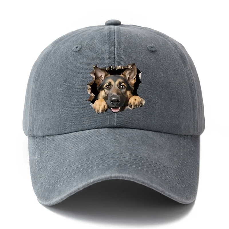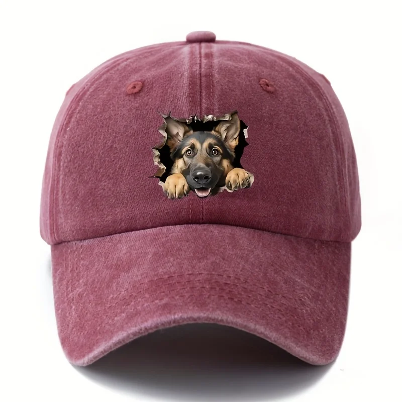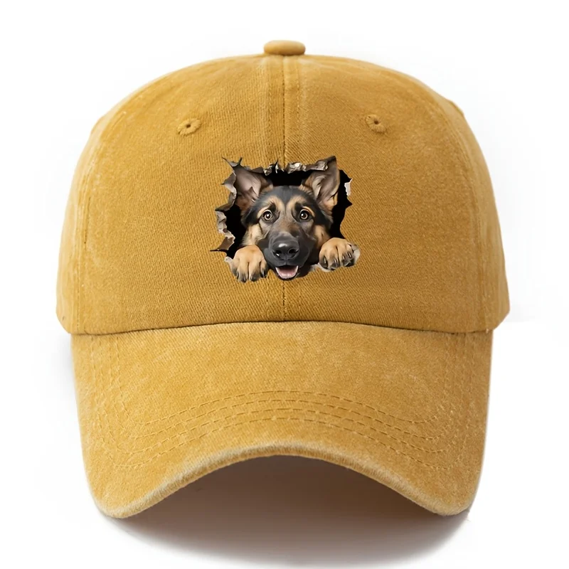 German Shepherd Retro Washed Baseball Cap Adjustable Casual Hat