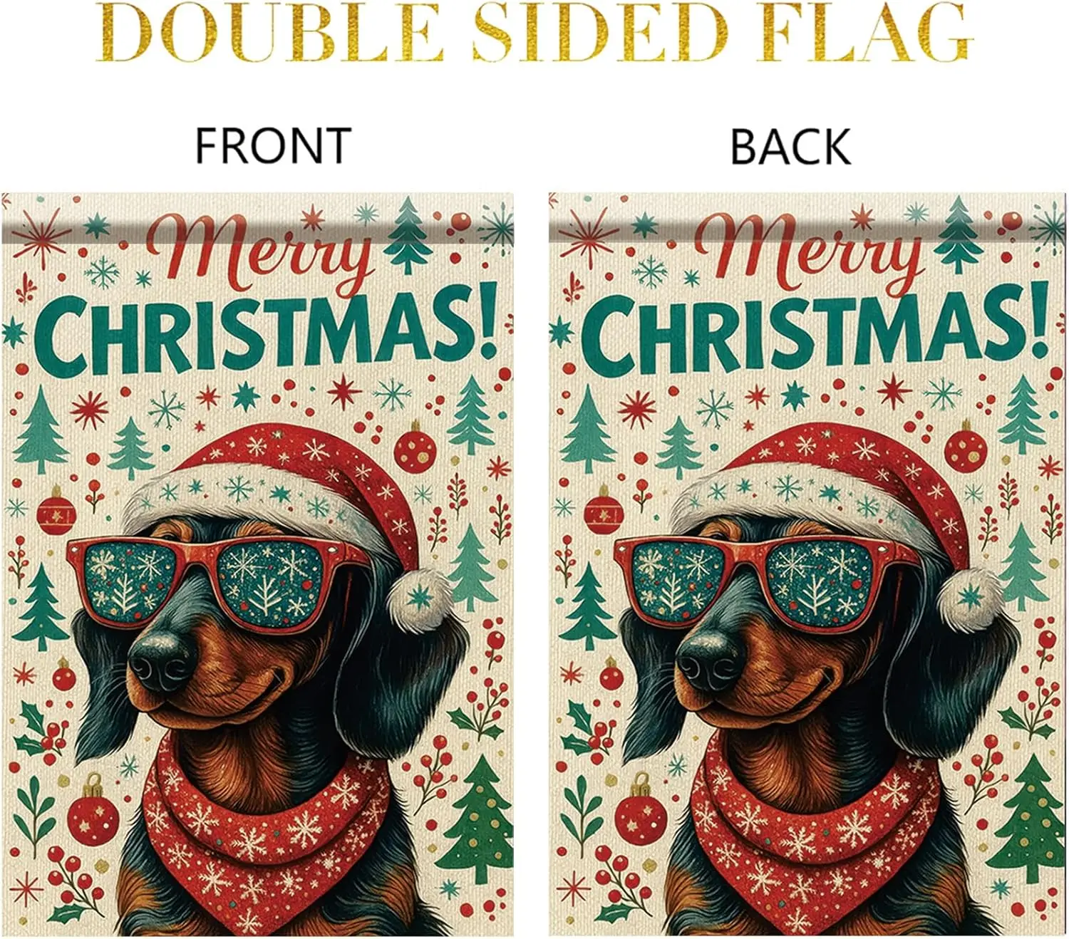 Merry Christmas Dachshund Garden Flag Double-Sided Holiday Yard Banner