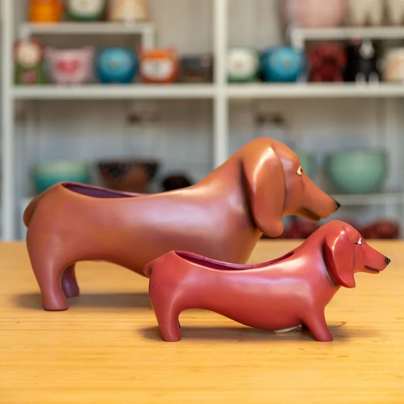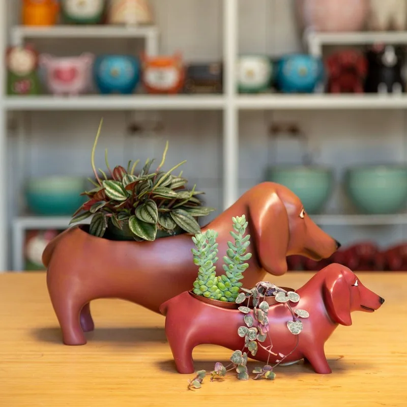 Add charm and personality to your space with this Nordic Style Sausage Dog Resin Succulent Flowerpot. Crafted from high-quality resin, this adorable dachshund-shaped planter is perfect for displaying small plants, succulents, or flowers. Its modern, minimalist design makes it a great accent for desks, shelves, or garden spaces. A delightful decorative ornament and a thoughtful gift for dog lovers and home decor enthusiasts alike!