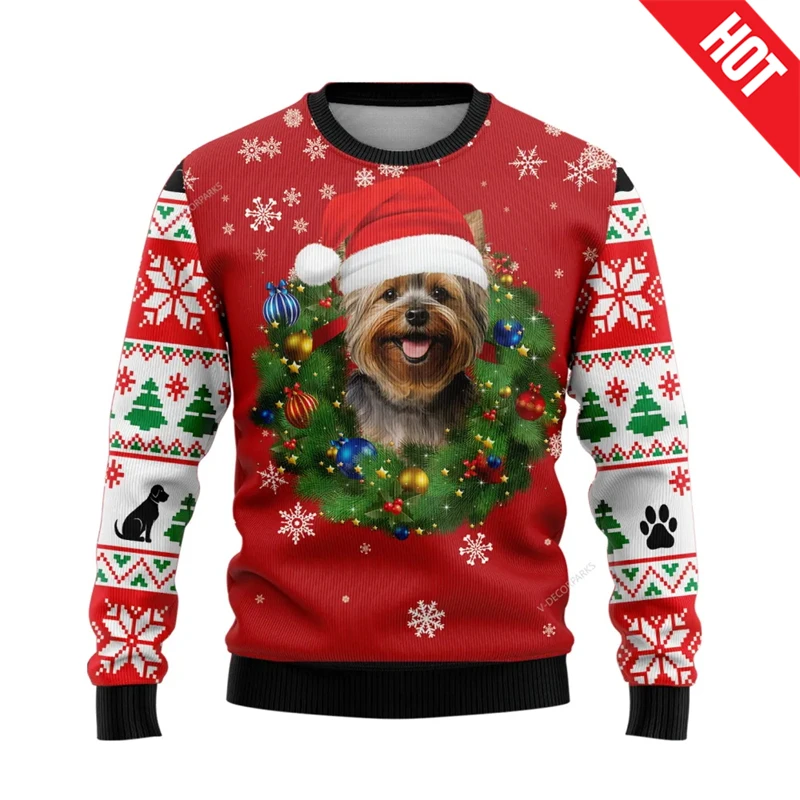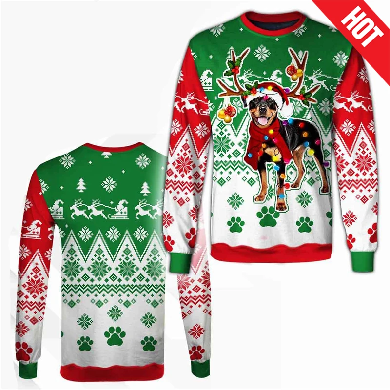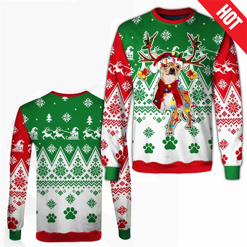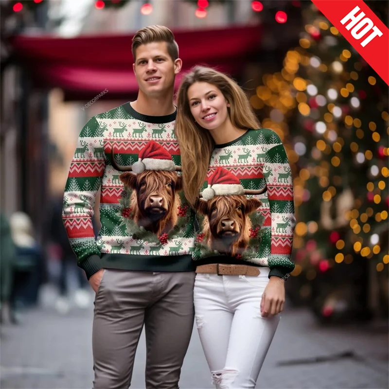 Ugly Christmas Sweater Funny Cow & Dog Crew Neck Pullover for Men and Women