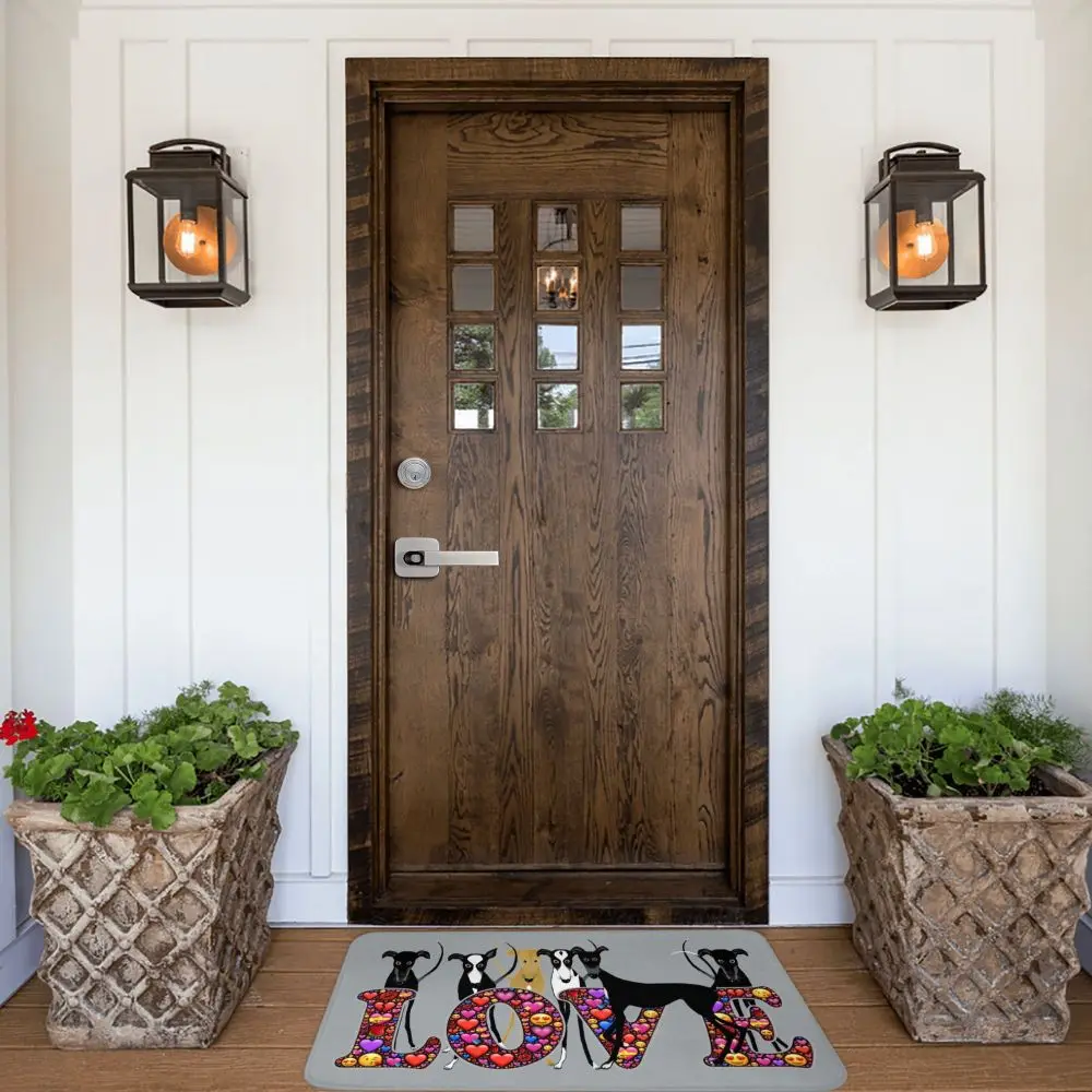 Keep your home cozy and stylish this winter with this quick-dry indoor doormat featuring a charming Greyhound and Whippet design. Perfect for front doors, bathrooms, or any entryway, this durable floor mat is crafted to trap dirt and moisture while drying quickly. Its soft, non-slip material provides comfort and functionality, making it a practical and decorative addition to any sighthound lover’s home.