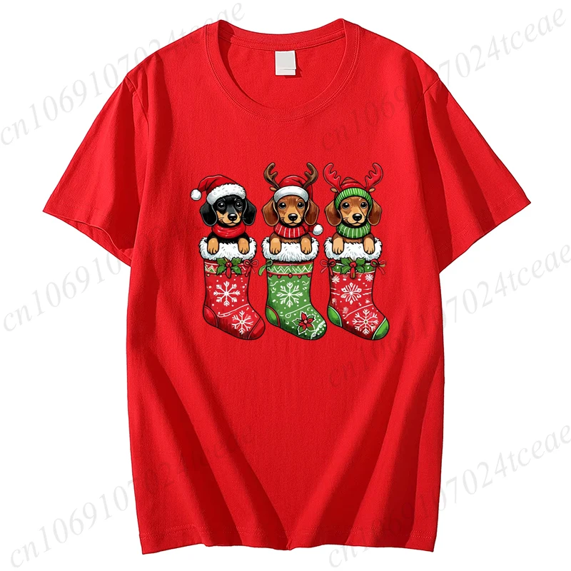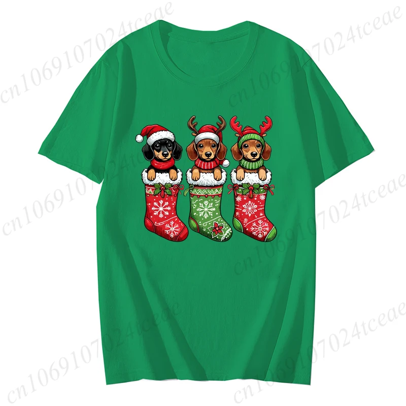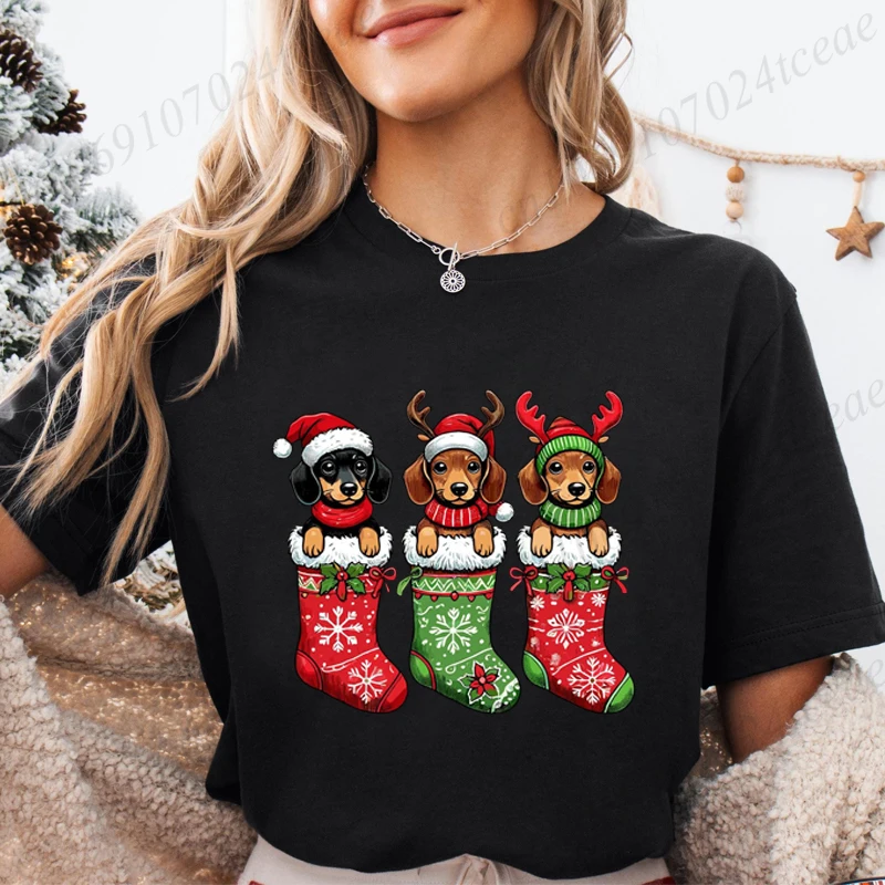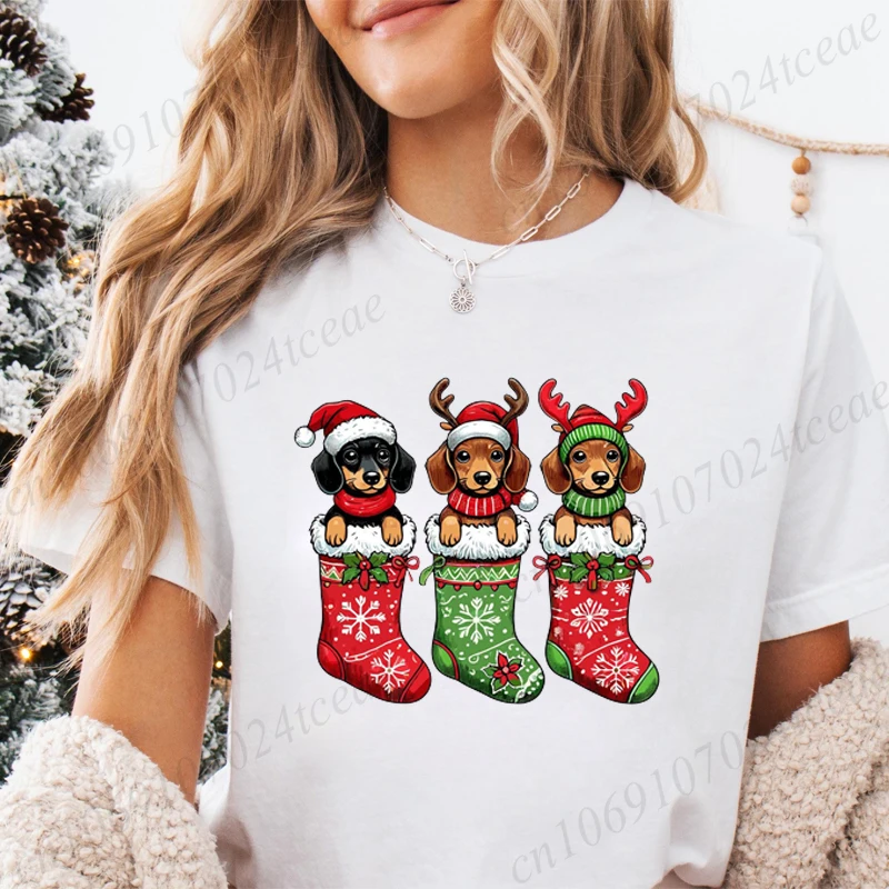 Women’s Dachshund Christmas T-Shirt Cute Dog Print Short Sleeve Tee